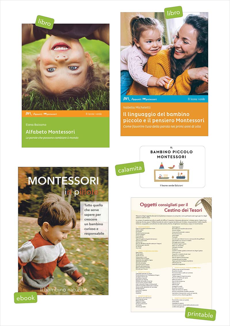 Due libri, ebook, printable e gadget per innamorarsi del metodo Montessori e metterlo in pratica.