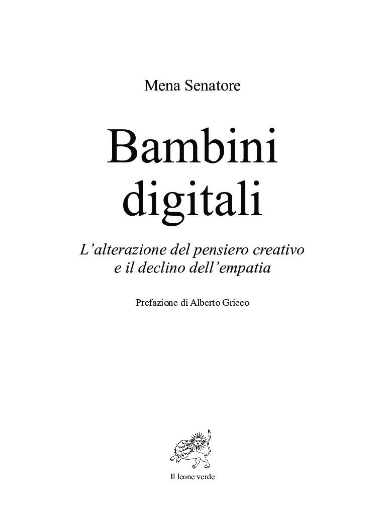 Mena Senatore, nel suo libro Bambini digitali, prende in esame gli effetti negativi dell’uso e abuso di queste tecnologie in età evolutiva, con particolare attenzione alla prima e seconda infanzia, sottolineandone le conseguenze a livello di sviluppo cognitivo, emotivo e sociale.