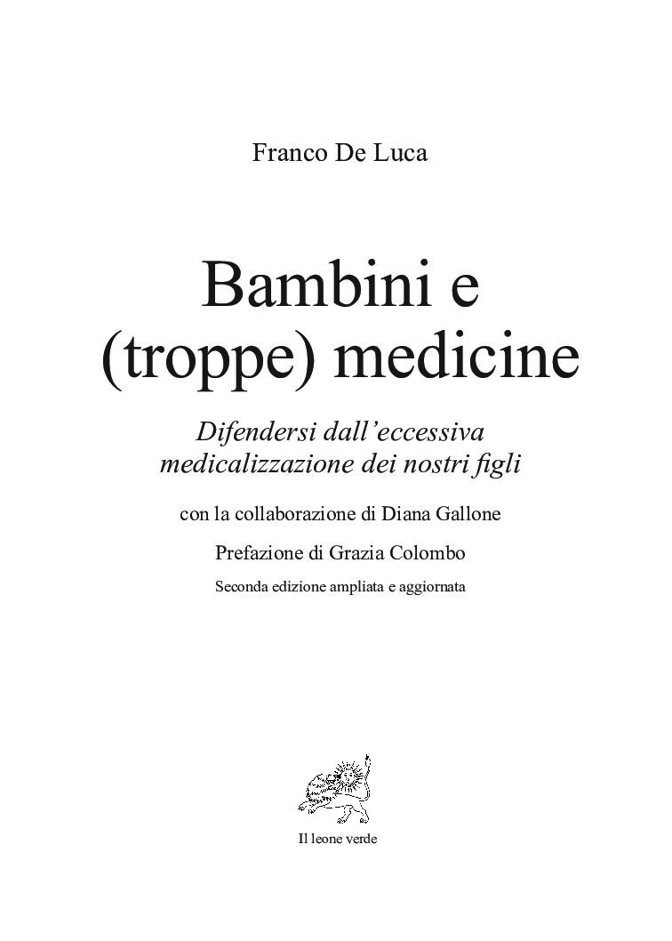 Bambini e (troppe) medicine di Franco De Luca è un libro pensato per aiutare i genitori ad acquisire fiducia nelle proprie capacità di accudire il bambino e valutare il suo stato di salute, evitando di delegare al pediatra tutte le decisioni, anche le più semplici.