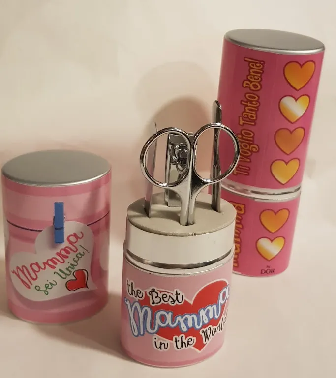 Set manicure con contenitore latta da borsetta Auguri Mamma