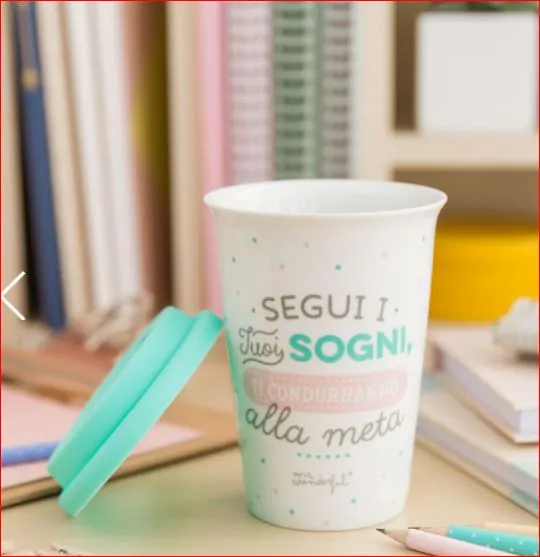 Non importa anche se il senso dell’orientamento non è il tuo forte: se sei capace di seguire i tuoi sogni, sicuramente ti guideranno dove vorrai. Ti garantiamo che sarà un viaggio fantastico, soprattutto se non ti farai mancare un buon caffè appena fatto e questa tazza take away così speciale.