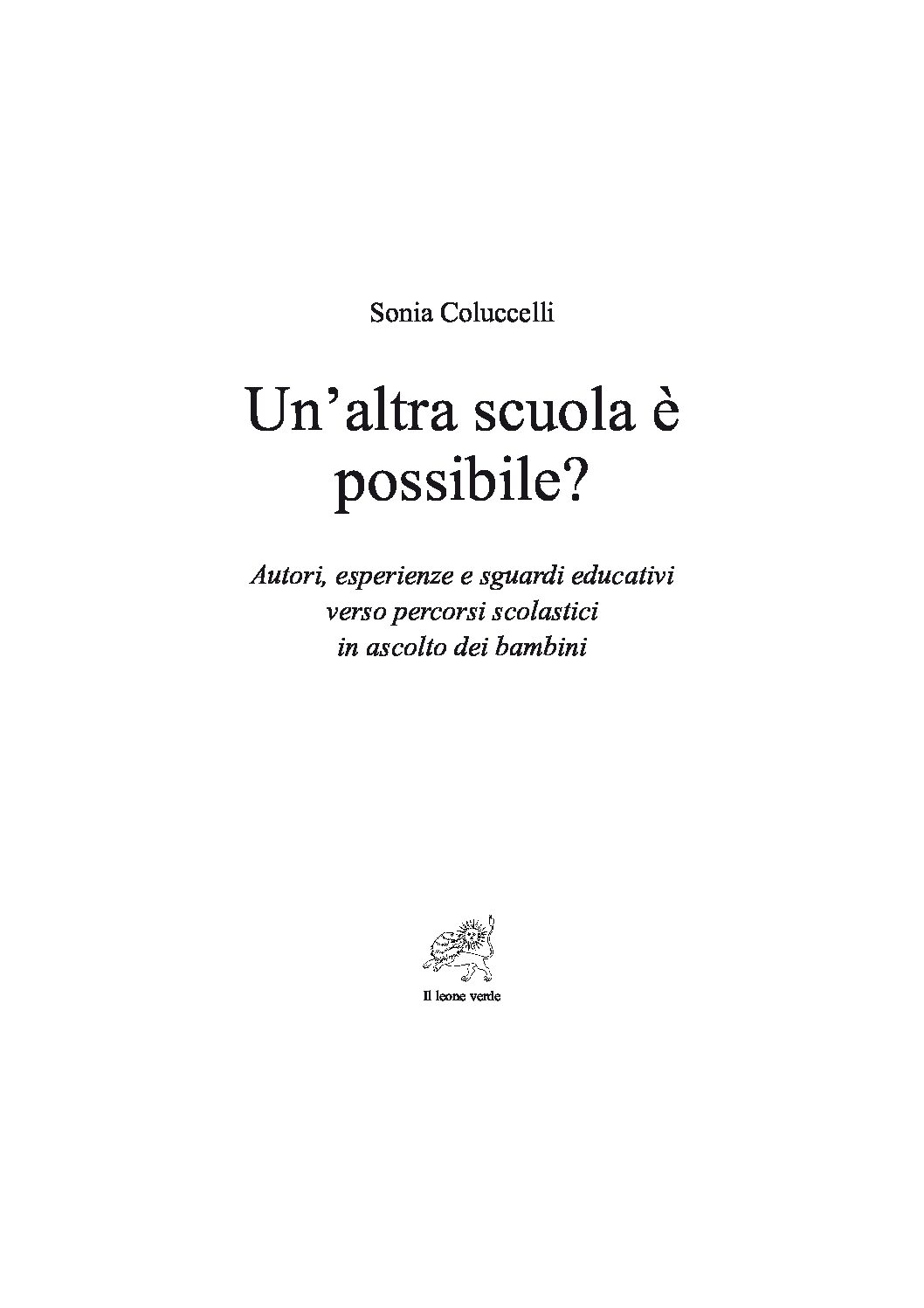 Un’altra scuola è possibile vuole cambiare questa prospettiva. Il libro sottolinea l’importanza di riflettere e di “vedere” i bambini per quello che sono. Propone di vivere esperienze didattiche fuori dall’edificio scolastico. L’autrice, Sonia Coluccelli, non intende la fuga da un sistema, ma la creazione di nuovi progetti educativi con una propria specificità.